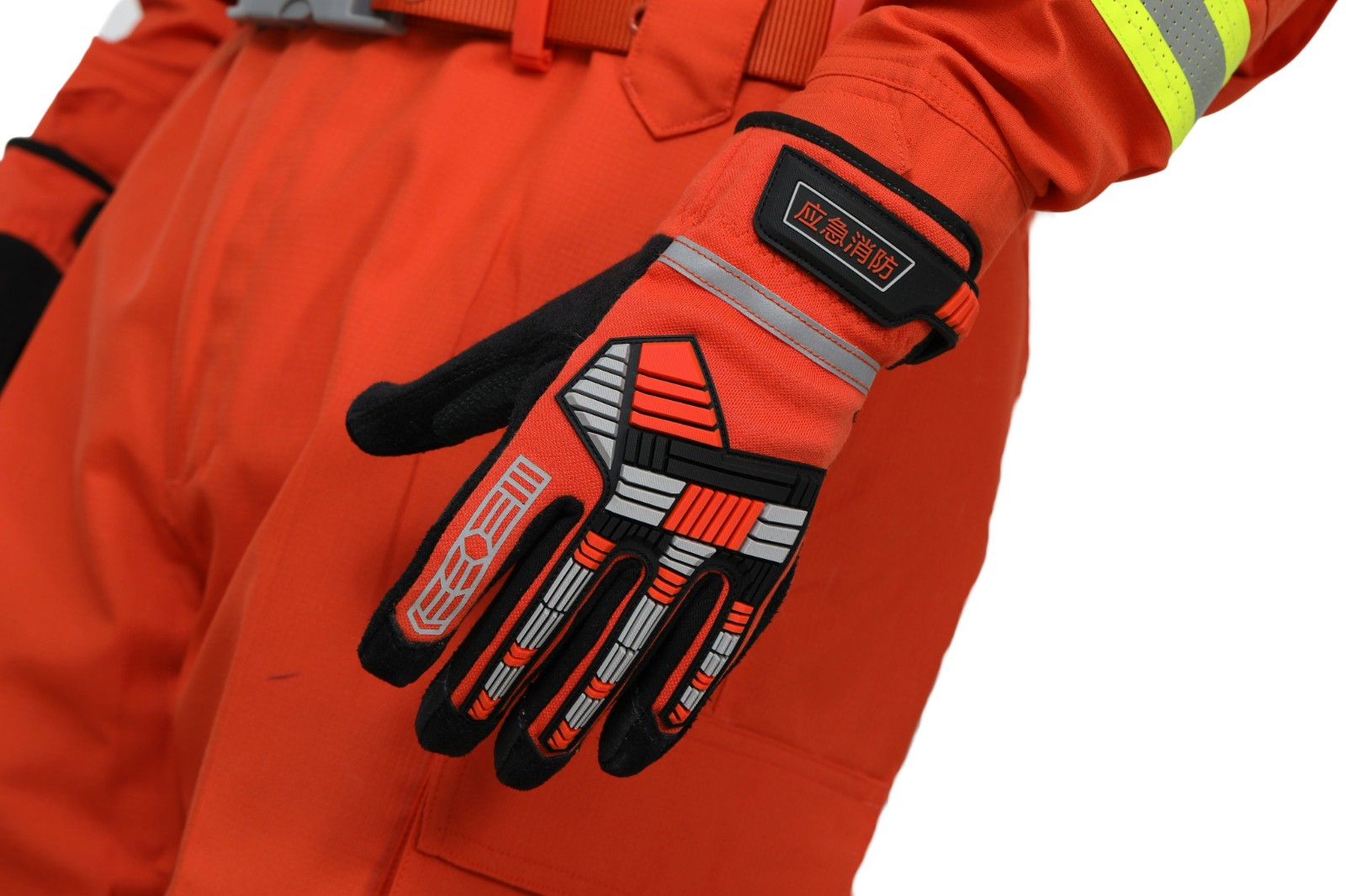 產(chǎn)品符合XF633-2006《消防員搶險(xiǎn)救援防護(hù)服裝》標(biāo)準(zhǔn) 1.搶險(xiǎn)救援手套為五指分離式,手套本體環(huán)形延伸,袖筒長(zhǎng)度超出腕骨不少于25mm,手套口的設(shè)計(jì)能限制雜物進(jìn)入手套內(nèi),手套與搶險(xiǎn)救援服的袖口配合穿戴。