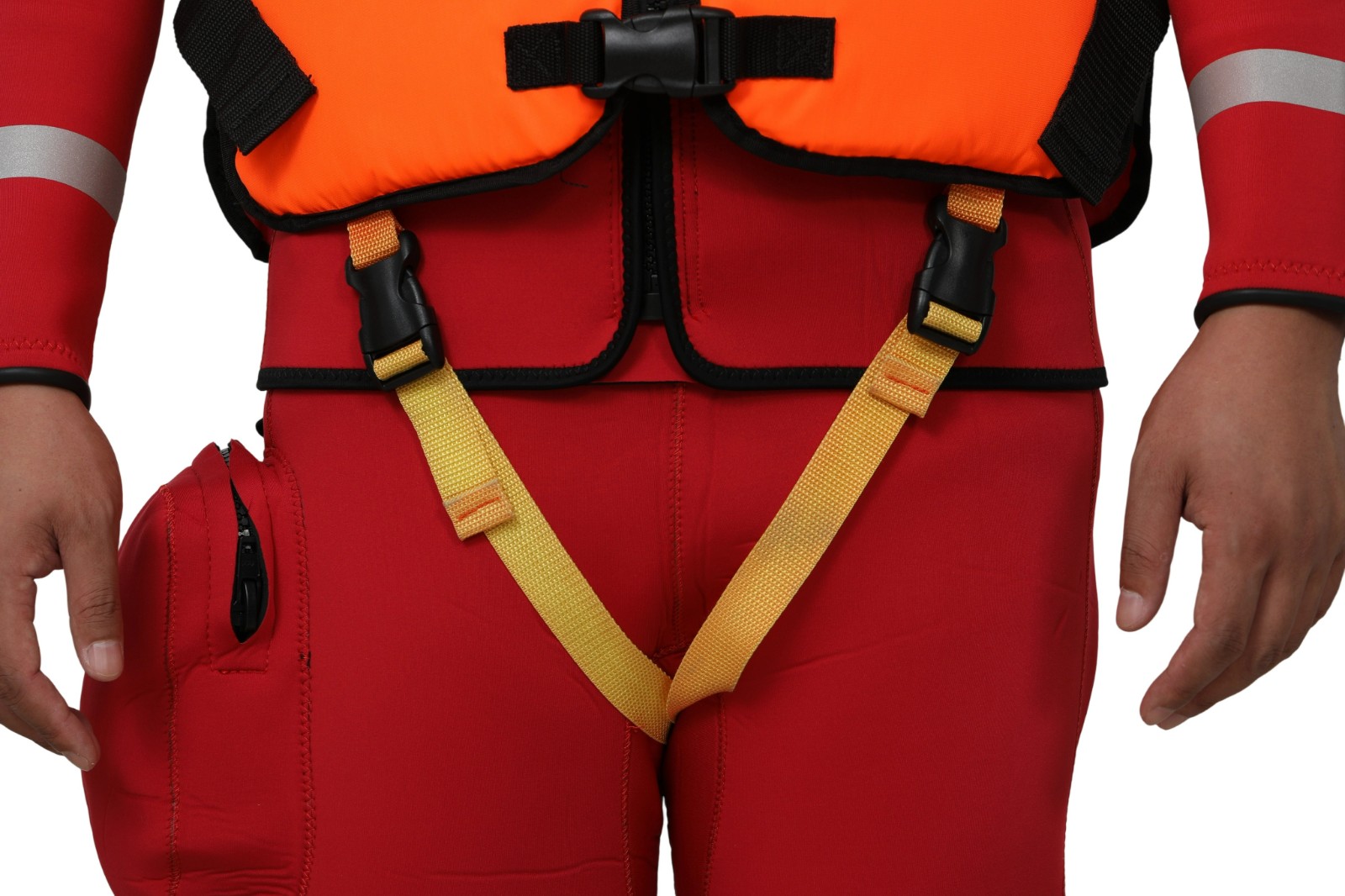 救生衣輔件主要包括拉鏈、敷帶、反光帶、搭扣及掛環(huán)等,其中敷帶包括襠帶和收緊帶。